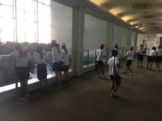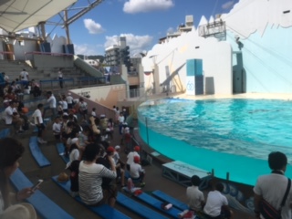 須磨海浜水族園に着きました。今から、イルカショーを見ます。みんなノリノリです。