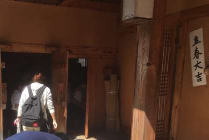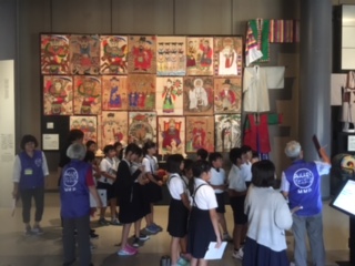 民博の韓国、朝鮮半島の展示コーナーでいろいろな展示物の説明を聞きます。もう一つのグループは、民家の中でお話を聞きます。