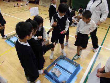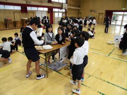 本日2年生が1年生を招待して、おもちゃランドを行いました。この間行った宝栄フェスティバルでも経験しましたが、回数を重ねるごとに上手になっています。招待された1年生の児童も楽しそうに活動していました。