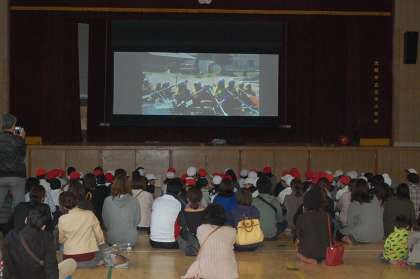 5年は林間学習のスライドショーと運動会で披露したソーラン節、6年は修学旅行のビデオとスライドショー、そして子どもたちによる合唱です。