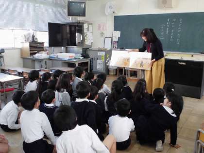朝の時間に、保護者の方による絵本の読み聞かせをしていただきました。図書室にあるお薦めの本を読んでいただき、子どもたちも静かに耳を傾けていました。