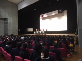 区内の6年生がみんな集まって、戦争体験の語りを聞きました。