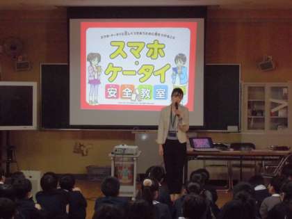 本日6年生がNTTドコモの方によるスマホ・携帯電話の出前授業を受けました。児童の中にはスマホや携帯電話を所持しており、安全には配慮しつつもまだまだ知らないことがあり、専門家の方に教えていただきました。児童も真剣に話を聞いていました。