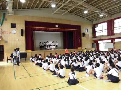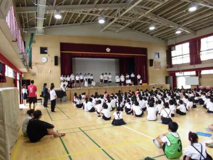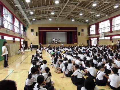 今日の児童集会では、給食委員の児童たち主催のクイズ大会がひらかれました。