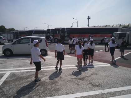 桂川PAでトイレ休憩しました。2号車のバスでは、みんなのリクエストした歌を楽しく歌っています。恩田先生と岡野先生のDJもノリノリです。