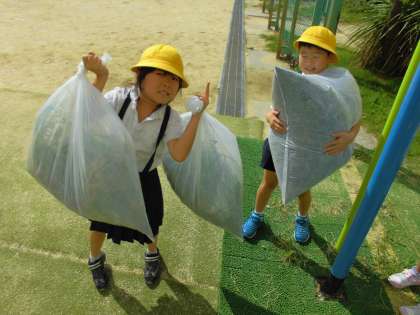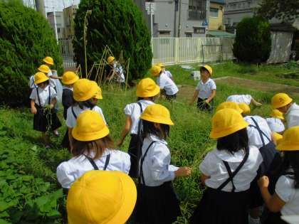 今日は、生活科の学習の一環で、学習園の雑草を抜きました。なかなか抜けない雑草に苦労しながらも、協力して取り組むことができました。
