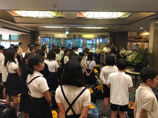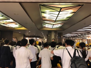 ホテルに到着しました。すごいやんという声があがりました。開舎式の後は避難訓練です。