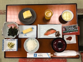 朝ごはんです。旅館の方から、朝からこんだけお代わりする学校は初めて。気持ちいいとほめていただきました。