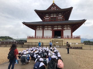 曇っていますが、雨は降っていません。若草山は雲がかかっています。