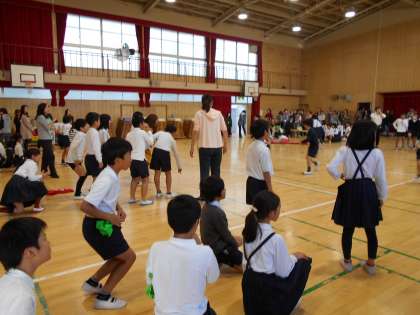 本日4年生が親子集会を行いました。親子でボール運びリレーをしたり、先日敬老の集いで発表した歌を歌ったりしました。親子で楽しい充実した時間をもつことができたことと思います。