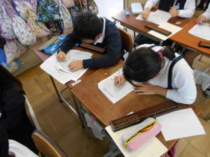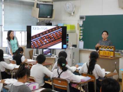 4年生が、3回目のそろばん学習を行いました。本日で最終となります。今回は大型モニタを使って授業をしていただきました。また小数についての学習も行いました。3回のそろばん学習でしたが、講師の澤田先生にはたくさんのことを教えていただきました。子どもたちもすっかりそろばんに馴染み、楽しんで学習していました。