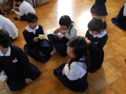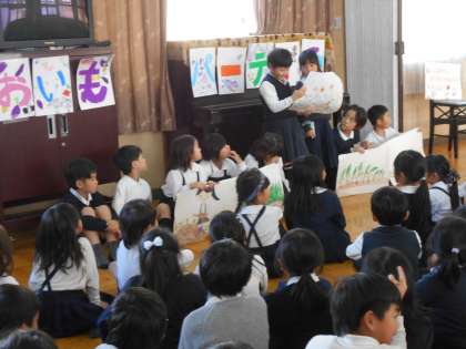 本日2年生が生活科でおいもパーティーを行いました。学習園で収穫したさつまいもからおいしいスイートポテトになりました。さつまいも栽培にあたりお世話になった地域の方もパーティーに招待し、日頃の感謝の気持ちを伝えました。心もお腹も満足した会になったことと思います。