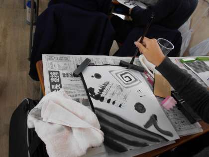 本日6年生が出前授業で水墨画講座を行いました。筆の使い方や墨の含み具合などを教えていただき、自由に絵を描きました。水墨画は白黒ですが、墨の濃淡や筆の太さなど違いで、趣のある作品がたくさん出来上がりました。