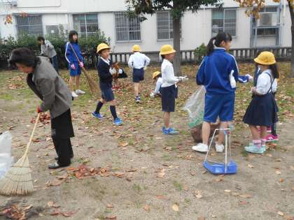本日は、小中連携がありました。1・2年生が中学2年生と公園掃除をしました。地域の方々にもたくさん来ていただき、一緒に掃除をしました。児童は中学生とコミュニケーションをとりながら楽しく落ち葉を拾っていました。きれいになった公園を見て喜んでいました。