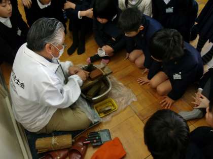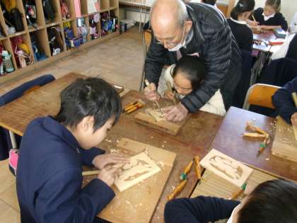 本日4年生が大阪欄間工芸協同組合さんの協力により、大阪欄間の体験学習を行いました。伝統的工芸品について学ぶとともに、実際に大阪欄間を見せていただいたり、彫刻刀で欄間づくりをしたりしました。どの児童も熱心に話を聞いて作業に取り組んでいました。