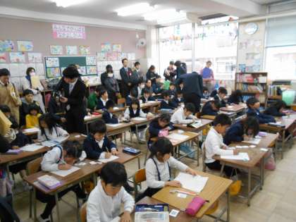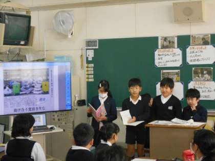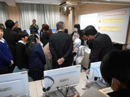 本日、本校で大阪市小学校教育研究会の視聴覚部の総合研究発表会がありました。1年3組、4年1組、5年3組で公開授業を行いました。1年3組では小型ロボットを使用しての授業、4年1組では新聞とタブレットを活用しての授業、5年3組ではPepper(ペッパー)を使用しての授業で、どの授業もたくさんの方に参観していただきました。子どもたちもたくさんの人に見られて、恥ずかしそうにしながらも精一杯頑張っていました。
