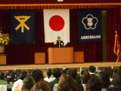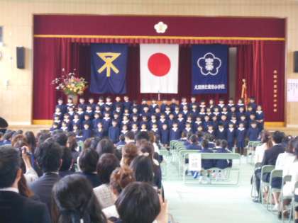 春空に桜がゆれる春本番の今日、入学式を行いました。89名の新入生をお迎えしました。元気いっぱいの1年生です。あいさつもしっかりできました。月曜日からの登校が楽しみです。