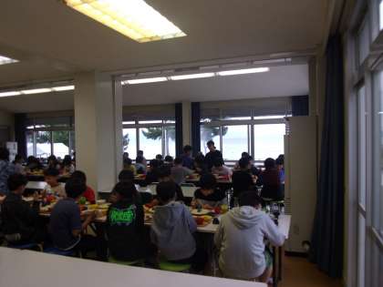 宿舎での食事も回数を重ねると、食事係の子どもたちの準備も手際よくなっています。よく食べている子が多く、朝から何回もお代わりをする子もいました。部屋の荷物整理の後、野外炊事を行います。