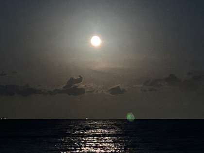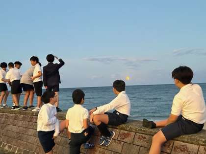 2025年最大の満月「スーパームーン」がきれいに見えました。入浴を済ませた子から浜に出て眺めました。「今日は天気もいいし、月もきれいだし、旅館もいいし、おいしいご飯も待ってるし、いい日やわー」と気持ちも高まっています。