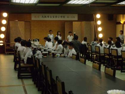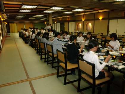 食事の時間になりました。お代わりもしてたくさん食べています。淡路島の玉ねぎ、海の幸どれもおいしいです。この後は、お買い物タイム、レクリエーションとなります。まだまだ楽しい活動が続きます。