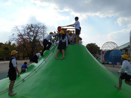 昼食を食べ遊具で遊びました。宝栄小学校でない子にも場所を譲る優しさを見せながら、楽しみました。