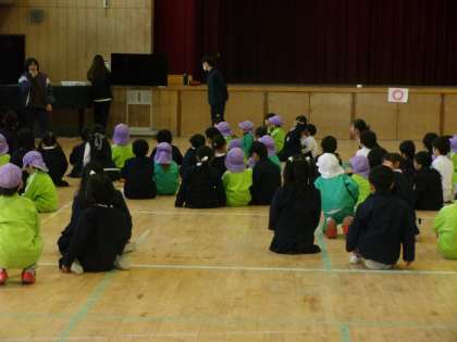 小市保育園の年長組の子どもたちが見学に来てくれました。1年生の子どもたちは優しくお迎えをしました。まずは学校案内です。1年生の方が人数が多いので、2,3人で1人の園児さんを案内していました。ここは何をするところかわかりやすく説明していました。この4月には、2年生に学校を案内してもらっていた子どもたちです。わすが数か月だけでも大きな成長を感じました。その後、講堂でゲームをして交流を深めました。