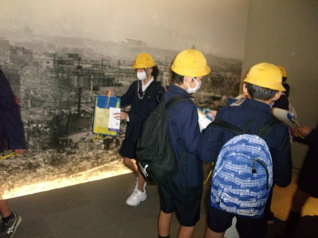 6年生は、社会科の学習で反戦平和学習を行っています。さらに詳しく学習をするため、大阪城公園内にあるピース大阪に行きました。子どもたちは、じっくりと展示物をみて熱心にメモを取り、グループの友だちと感想を伝えあって見学していました。忘れてはいけない歴史を伝える貴重な資料に触れ、自分の考えを深めていくことができました。