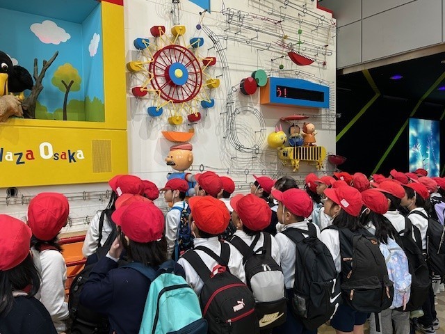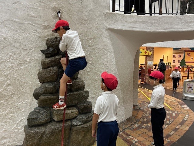 2年生は、キッズプラザでたっぷりと活動を楽しみました。科学的な展示物や大型のアスレチック、外国の文化を知るコーナーなど友だちと誘い合って体験をしました。お店屋さんのロールプレイングができるコーナーでは、お客さんになった子どもが他校の小学生であっても、上手に会話をして交流していました。ルールや集合時間を守り、誘い合って楽しむ姿に成長を感じました。