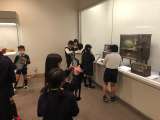 館内での見学の説明を聞いています。 今から館内を見学します。