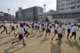 20分休み、運動場を元気に走ります。一番内側は低学年、中学年、いちばん外側は高学...