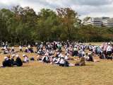 コーナーを全部回って、各班ごとにお弁当を、食べています。早く食べた班は、芝生の楽...