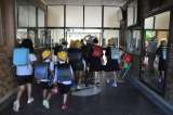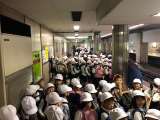 低学年が駅に着きました。高学年は先に出発して準備しています。最後は3.4年生です...