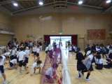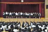 児童集会で前期代表委員の退任のあいさつと後期代表委員の就任のあいさつがありました...