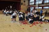 バドミントンのネットを挟んで、紅白の玉入れの玉を相手コートに投げるゲームです。簡...