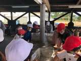 協力してカレーを作っています。 いいお天気です。