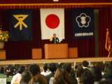 25日(木)児童集会で前期児童会の代表委員、各委員会委員長がみんなに挨拶をしまし...