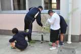 6年生は理科室の掃除です。理科室の前に観察用のあぶらなのプランターがありました。...