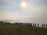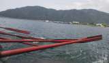 カッターに乗りました。長さ4m、重さ8kgのおーるを2人で漕ぎます。1艘に12本...