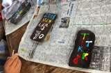昨日、磨いた板に色付けをしして作品を作っています。楽しい作品がいっぱいできました...