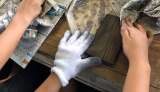 箸作りです。若狭塗り箸というもので、お箸の上部に6枚の貝殻が埋め込んである漆塗り...
