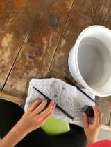 焼き板工作です。杉の板を焼きます。炭になったところを取り除くと光沢のあるこげ茶色...