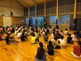 2日目の夜の行事、室内オリンピックです。活動班対抗のゲームです。第1種目、紙飛行...