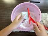 カッター体験が終わった1組と2組はお箸作りです。塗りのお箸を削り、模様と貝殻を出...