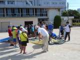 開会式のあと、テントを組み立てたり、かまどを作ったり、飯ごうの準備をしたりと各担...