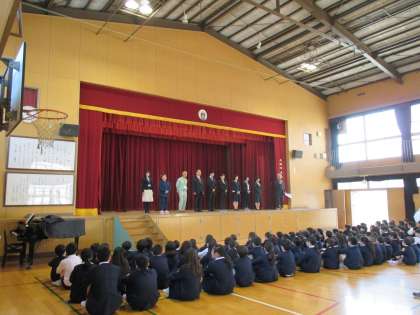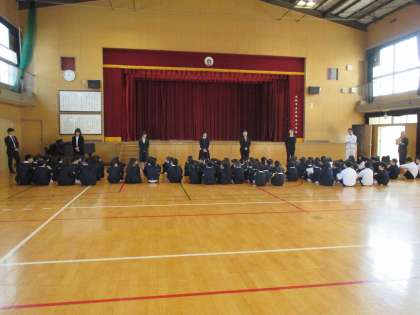 1時間目に、着任式と始業式を行いました。校長先生から、新しく本校に着任された先生方の紹介がありました。そしていよいよドキドキの担任発表は、1年生から順番に発表です!