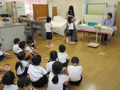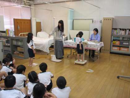 今週は、全学年で発育測定がありました。1年生にとっては初めての発育測定です。測定の仕方や待つ態度はもちろん、脱いだ服の片付けも上手にできていましたよ!