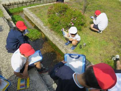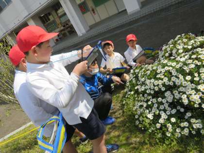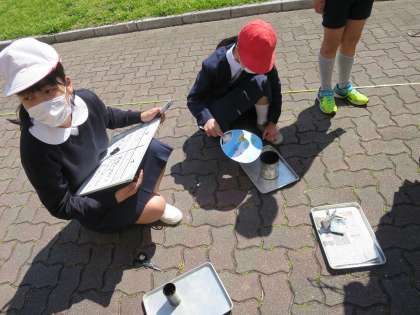 6年生は中庭で理科の実験を、3年生は中庭で「春見つけ」をしていました。暖かい日差しがとても心地よく、子どもたちも全身で「春」を感じているようでした^^