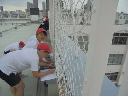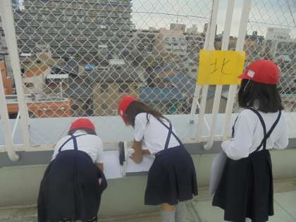 社会科の学習で「町探検」をする3年生。今日は校舎の屋上から自分たちの住んでいる地域の様子を観察しました。いつもとは違った見え方のする街の様子に興味津々!新しい発見はあったかなぁ〜?