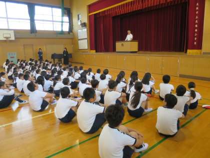 今日は、大阪市全校で取り組む「いじめについて考える日」です。本校では、児童朝会で校長先生から、具体的な例をあげながら「いじめは絶対に許しません」というお話がありました。また、学級では、担任の先生からのお話に加えて、いじめアンケートを行いました。学校全体で、いじめゼロをめざして取り組みます。