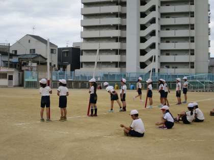 棒引きの練習をしました。1回戦は3年生対抗、2回戦は4年生対抗、3回戦は3・4年生の混合チームで対抗です。自分の勝負がついても、どんどんお助けにむかってます!